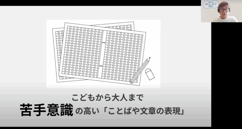 まずは動画視聴で気軽に受講いただける内容です。子どもたちの作文に対する向き合い方、添削における心構えなどをお伝えします。